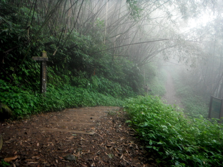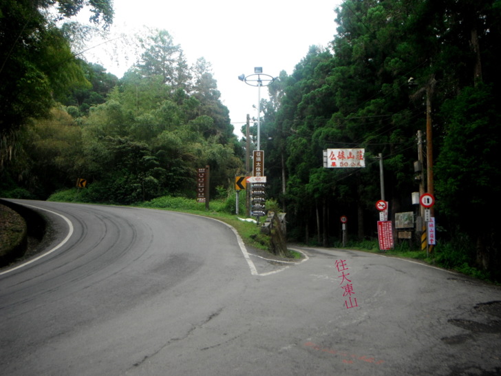 1134叉路(H1725m)。指標"左往大凍山1200m,60分,直往十八羅漢岩1950m,80分",取右上行再逢叉路,兩路都能上大凍山,直往石獅象,左往樹石盟,取直行。之型坡時緩時陡,恰可調整體力,優美的林相,慢行賞景是一種悠雅的享受。