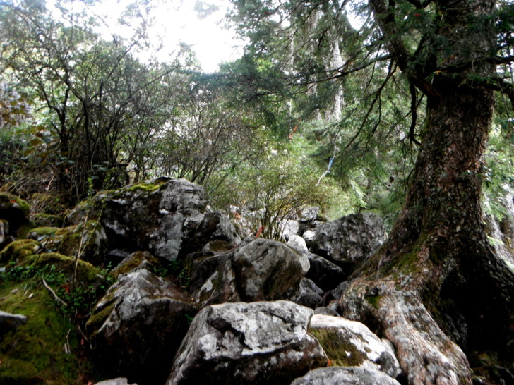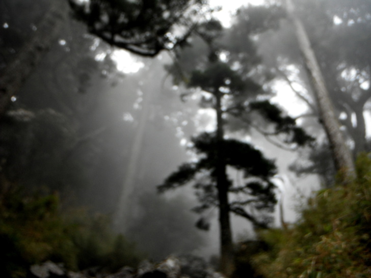 1022啟程下山,取原路陡下。超陡的坡度,上來不易下去難,仍是緩速下山。石瀑區中的霧影森林,透著幾分美感,也緩和下坡的距離感。