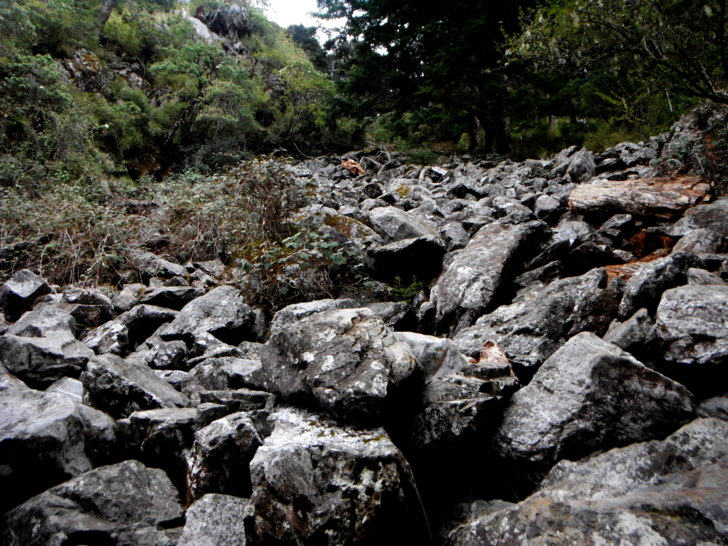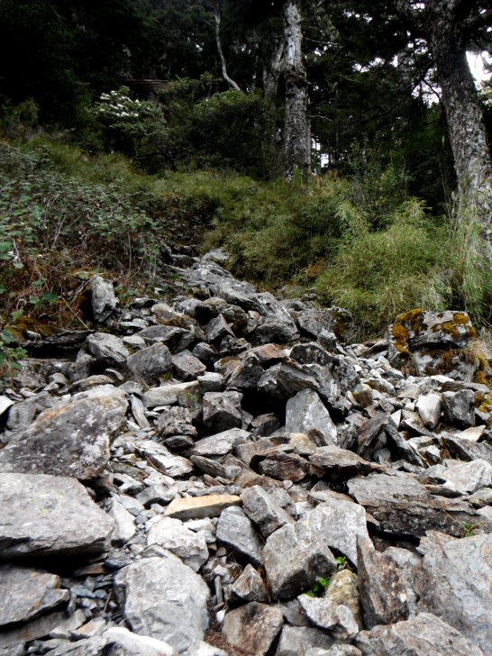 0826過0.4k牌(H2980m),順指標取右行不久,進入石瀑區。就是這裡!!上次讓路ㄟ吃足苦頭的地方,基本上到了這裡是沒路的,或這說到處都是路,卯起來往石瀑頂端走就對了。
