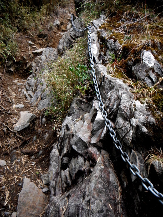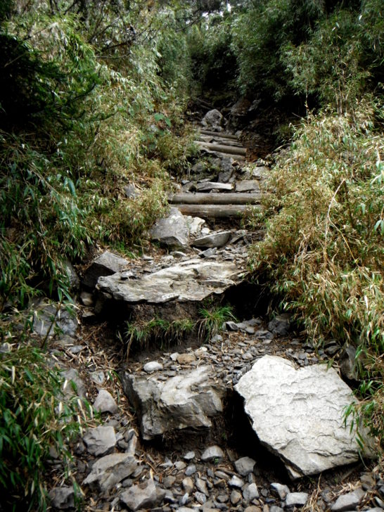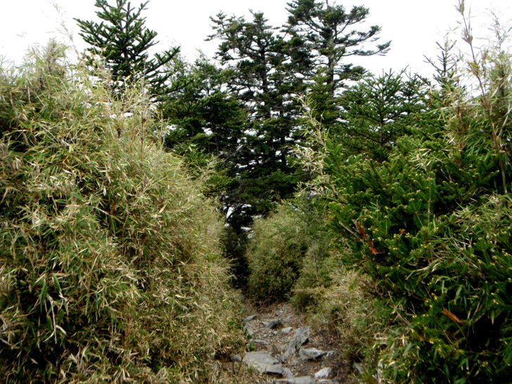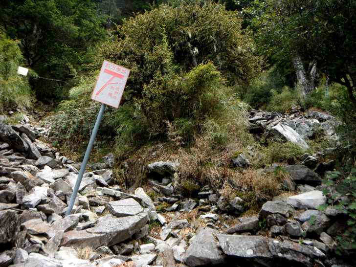 2.前峰登山口至山頂,屬陡上路徑,部份路段落差頗大,建議穿戴手套,攀石、抓箭竹為佳;石瀑區部份石頭不穩,建議採踏穩當再上行為宜,全程路徑指標清楚,無迷路之虞。
