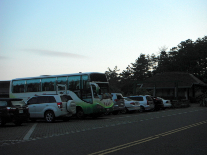 0550抵塔塔加停車場。下車整裝。已過了日出時刻,祝山方向仍看不見太陽,只有薄薄的雲海,景色不算美麗。氣溫有點偏低,穿起外套整理裝備。一群重裝山友也在整裝,閒聊道早,是準備登主、北峰的山友,看來裝備不少,不知上山如何操作?路ㄟ不便多問。
