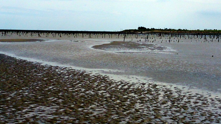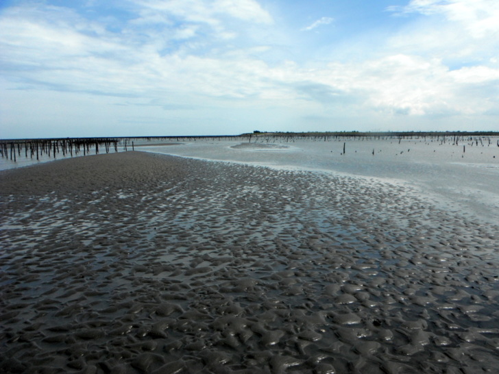 ↓退潮後的濕地風光--綿延2公里的綿密沙灘。