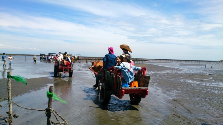 後記:芳苑海牛車活動有潮差因素,出發前建議先查詢退潮時間,或電詢魏清水先生(電話:0919688438),並事先預約。