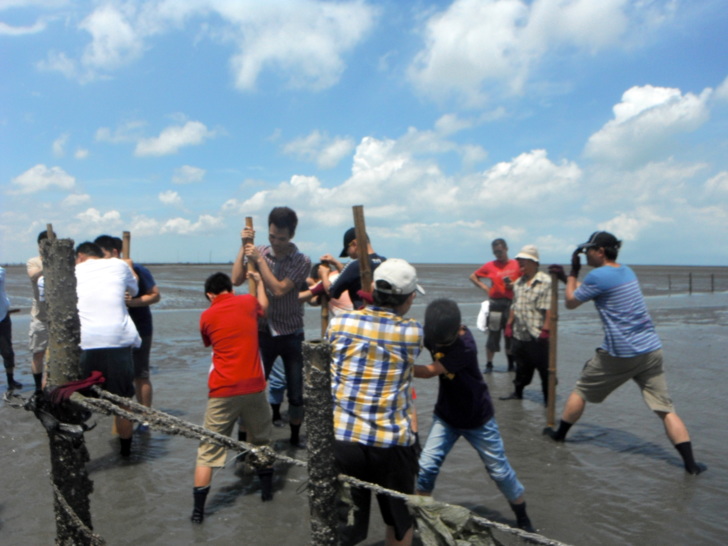 ↓插蚵棚比賽--有趣的活動。