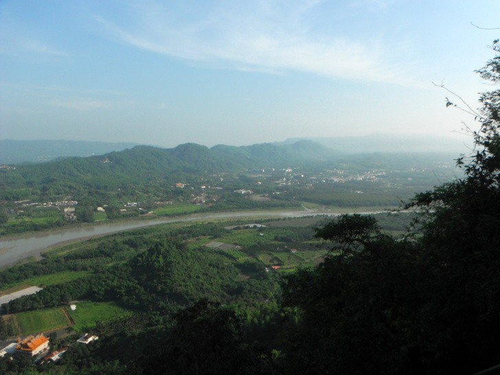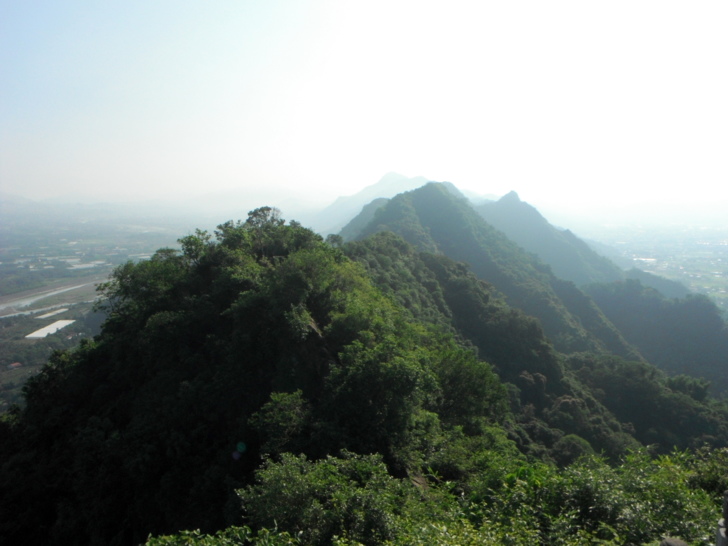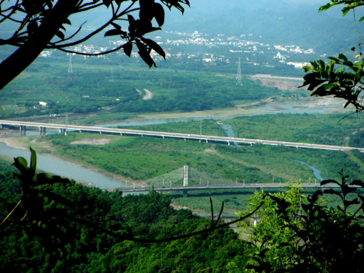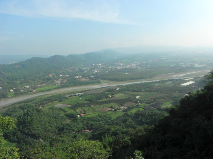荖濃溪谷景觀,搭配著巒峰堆疊起伏的山容,秀麗、悠遠,青山翠谷間是一幅自然的圖畫,遠處著名的斜張橋隱約可見,附近周遭的美景遍覽,難怪這座郊山會如此熱門了。