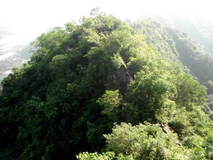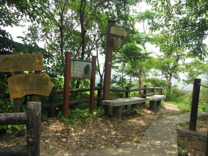 取階上行至一假山頭高點,有不錯的展望,路徑開始轉下,讓路ㄟ以為基點不在這裡,看著周遭起伏山峰,似乎高度都沒差太多,問題是...哪一座才是基點峰??路ㄟ暗暗叫苦,這趟又是太輕忽了。退回涼亭叉路,換走林廕步道。