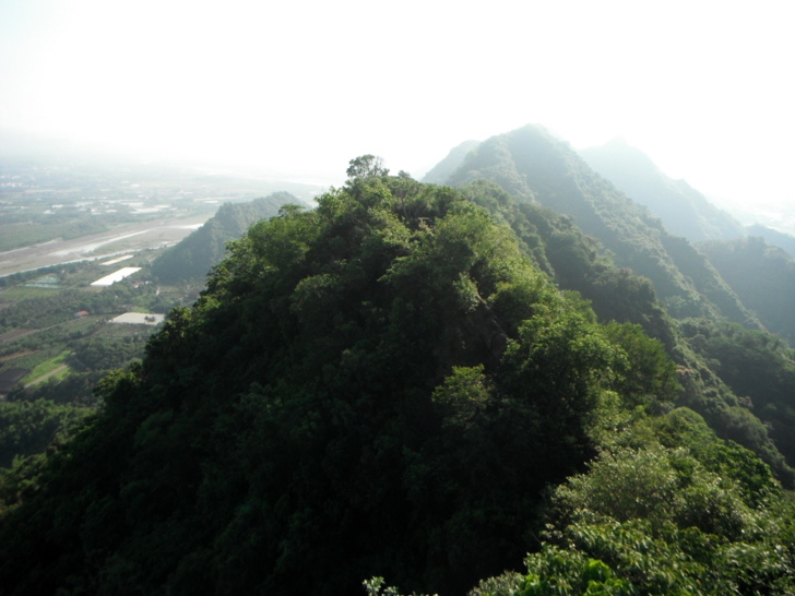 連稜起伏的旗尾連峰,,有著雄霸一方的高山氣勢,從第一或第二登山口上來想必要有一翻奮戰吧!這有點激起路ㄟ想要從連稜下第一登山口的鬥志,只是路ㄟ這趟實在穿帶的太"隨便",山雖不高,這種路徑多少也有一定的風險,在此刻不宜的顧慮下,只好隱忍作罷。