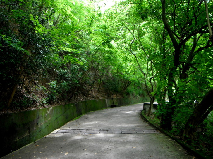 0657第三登山口(H80m)。水泥寬大步道,林蔭間,適中的坡度,走來輕鬆。