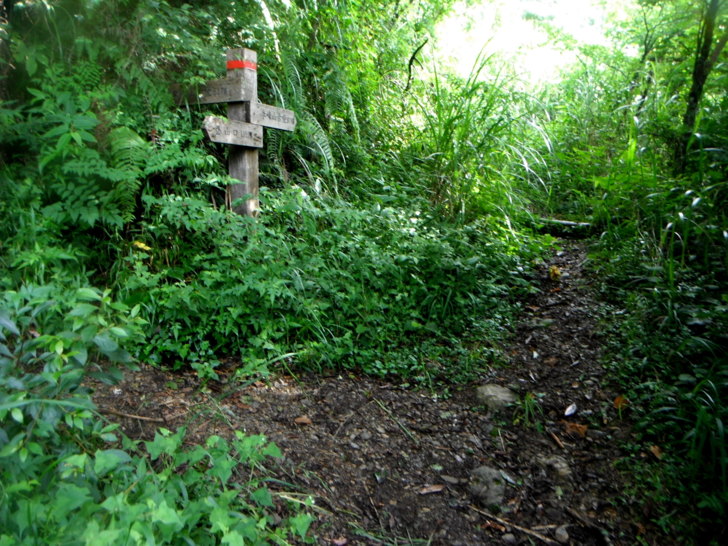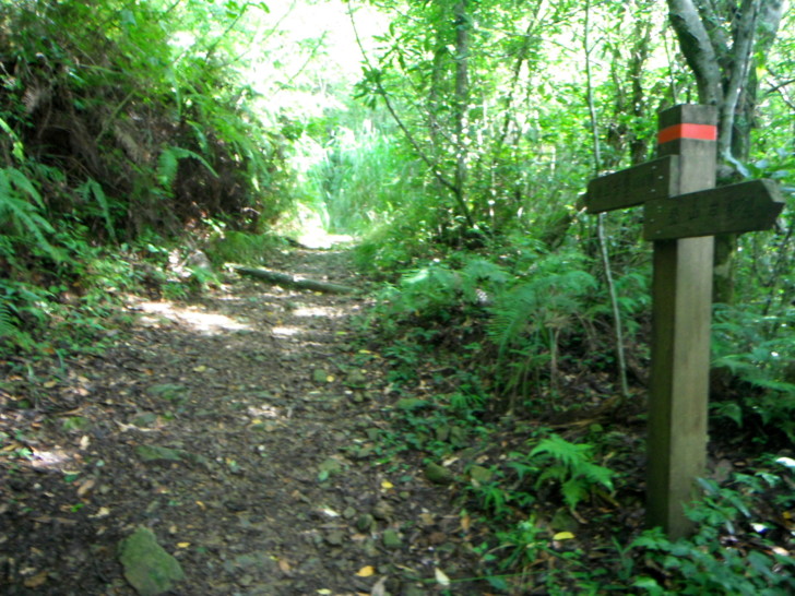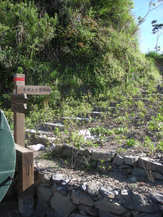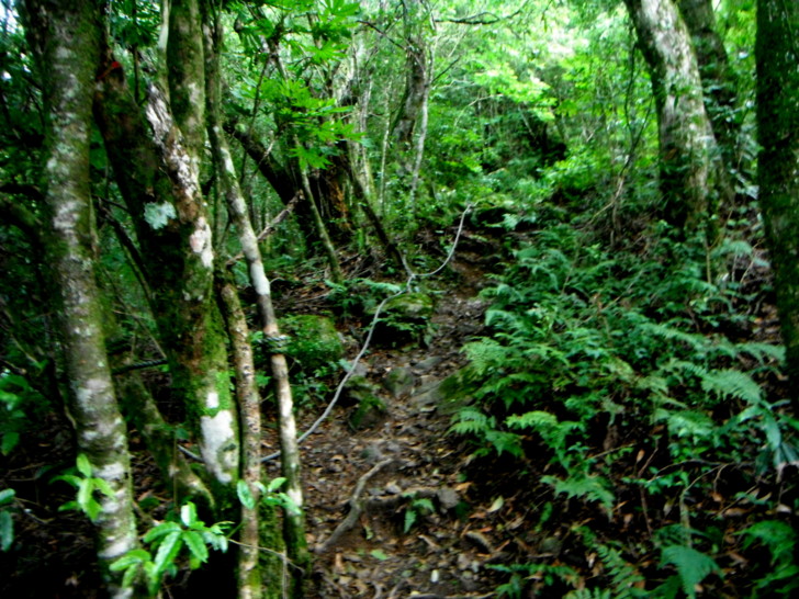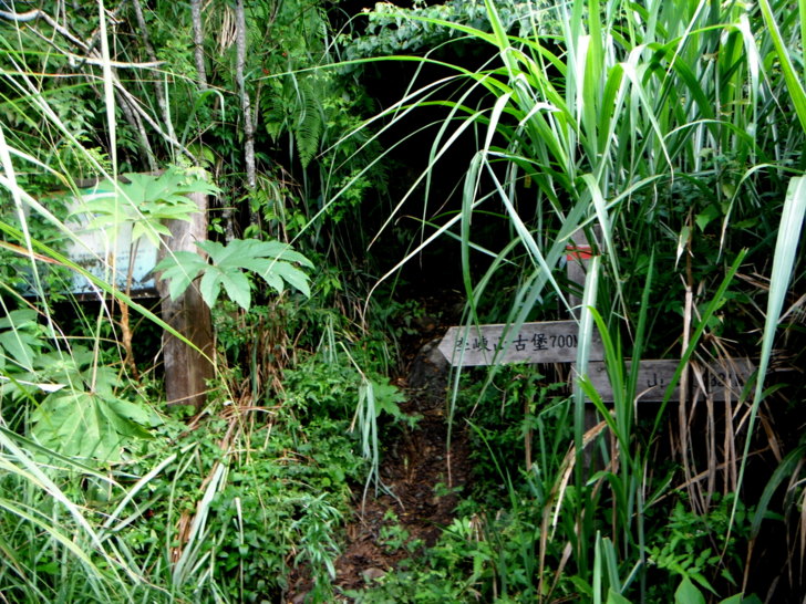 新舊路叉路口,看著直行的新路又是高過人的芒草,實在不想再鑽,取左走舊路陡上。一轉進舊路,發現長久以來的舊路完全沒變,一樣陡,一樣滑,一樣舒暢自在,比起鑽芒草,走舊路算是幸福,易行多了!