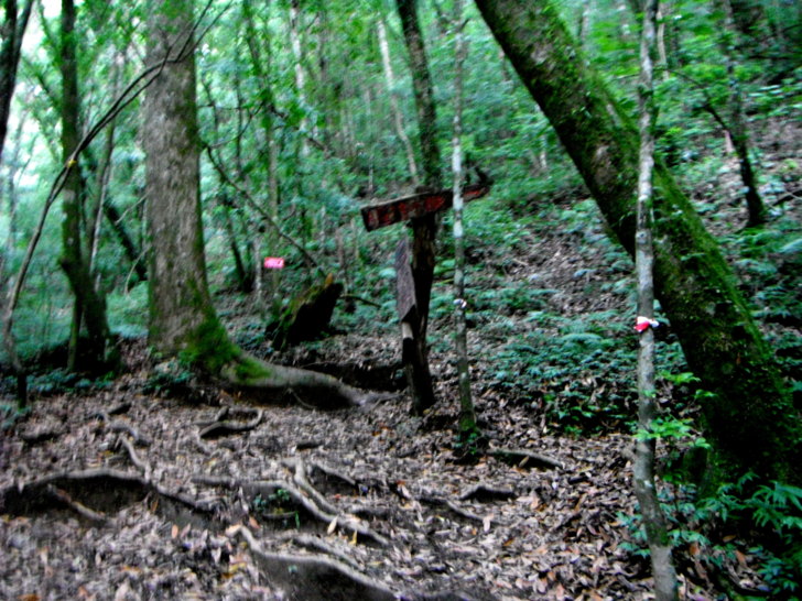 ↑A、B區叉路口,等候隊友們到齊,小休片刻後,取左行,走B區神木群。此刻也開始飄下陣雨,所幸雨勢不大。