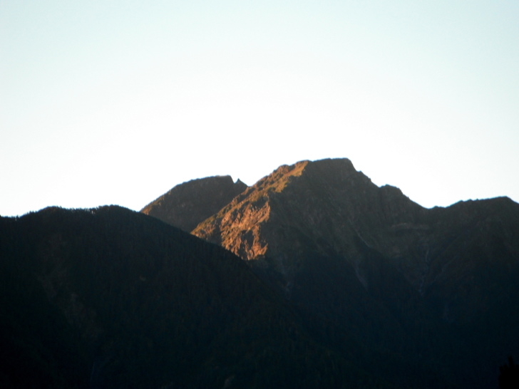 早起,似乎已經成為高山行程中的定律。微涼的溫度,賴在帳篷裡捨不得起床,幾次翻轉,總是要完成未完成的行程,天未明,起身煮食早餐,揹上來的水剛好用完。整理裝備,林間雖避風,卻有不小的反潮,整個帳蓬外帳都是露水,等不及太陽出來曬帳篷,將水珠抖一下,用毛巾簡單擦一下後,拔營。