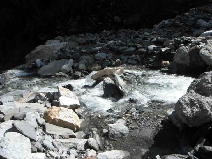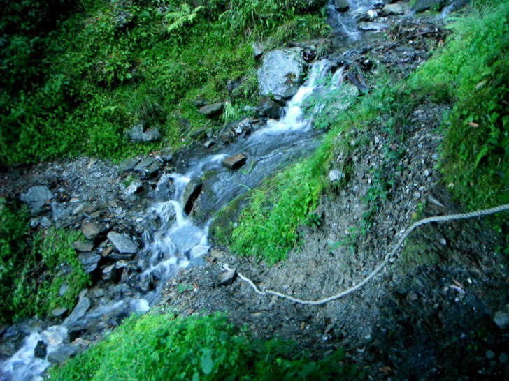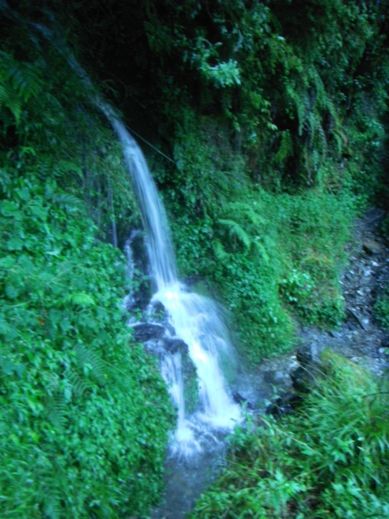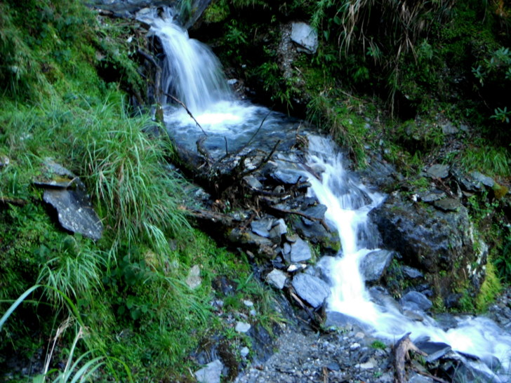 溪谷上方一個不算小的瀑布,景色壯觀,溪谷風情秀麗,在此用餐是一種享受。餐後小休片刻,順便取水3公升。整個背包忽然變的沉重許多。