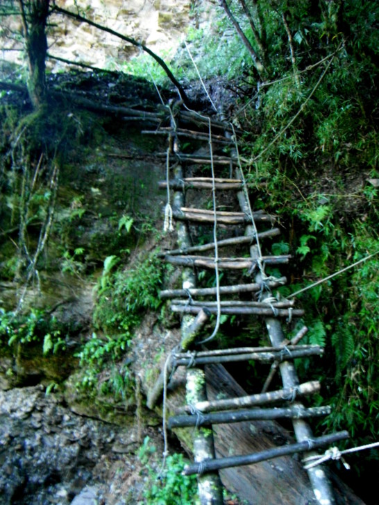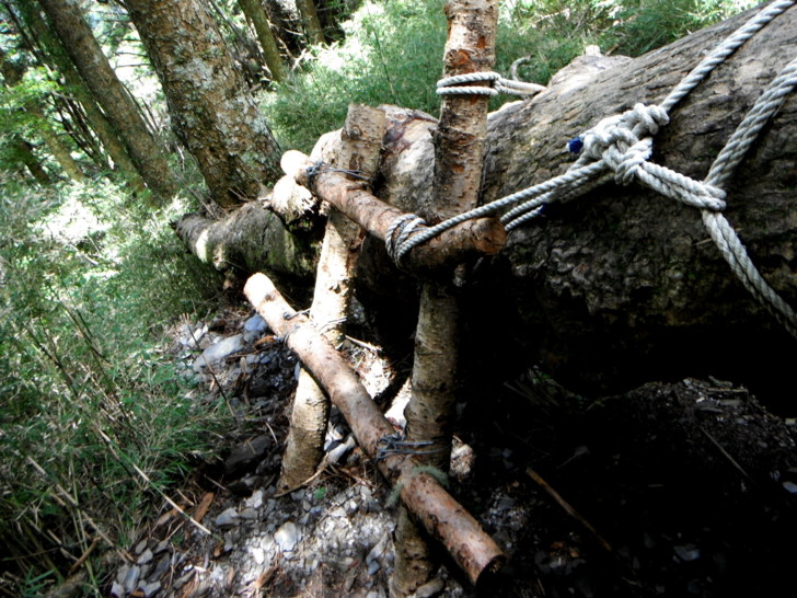 1406過木梯橋(H2360m)。舊橋已毀壞,這座橋看的出新建痕跡。