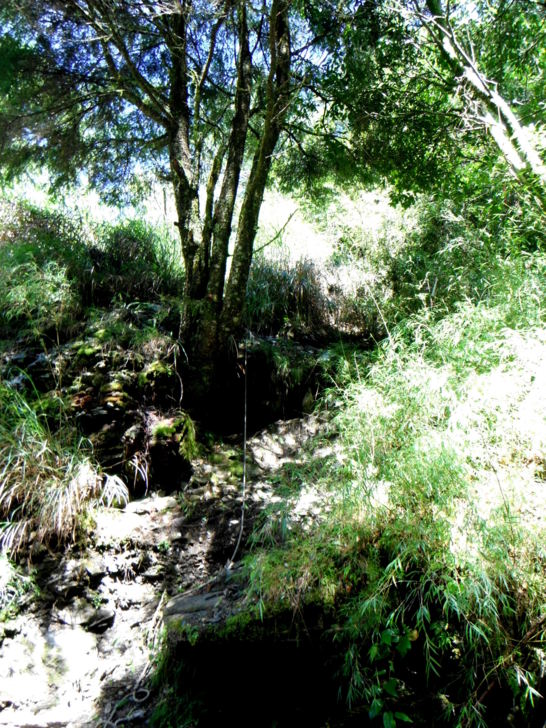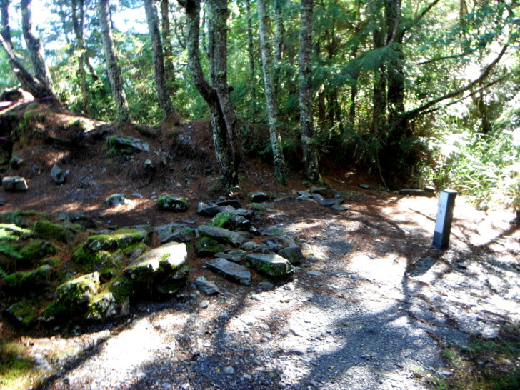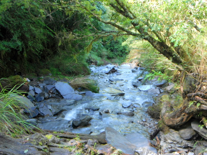0910抵8.4k登山口營地(H2620m)。寬大的平坦空地,是許多畢羊行程山友的重要據點,也是縱走行程的最後水源地。偌大的野營空間不是路ㄟ停留的地方,取徑下到溪谷的一塊小平坦空間,下背包,煮食午餐。