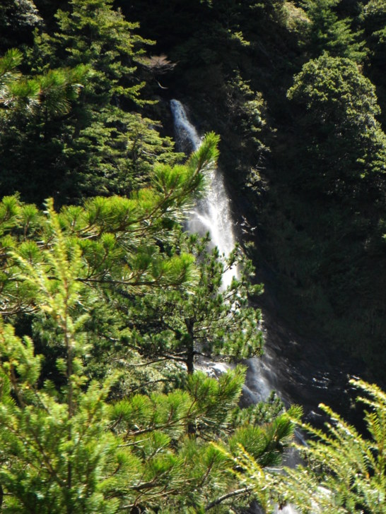 0805過瀑布(H2645m)。水量頗大。必須穿越瀑布下方,路ㄟ不敢大意,小心踩瀑布下方的石頭與樹根穿越,這算是這趟行程中第一個"困難"地型吧!,瀑布水濺濕衣褲,在行進中反倒覺得清涼無比。