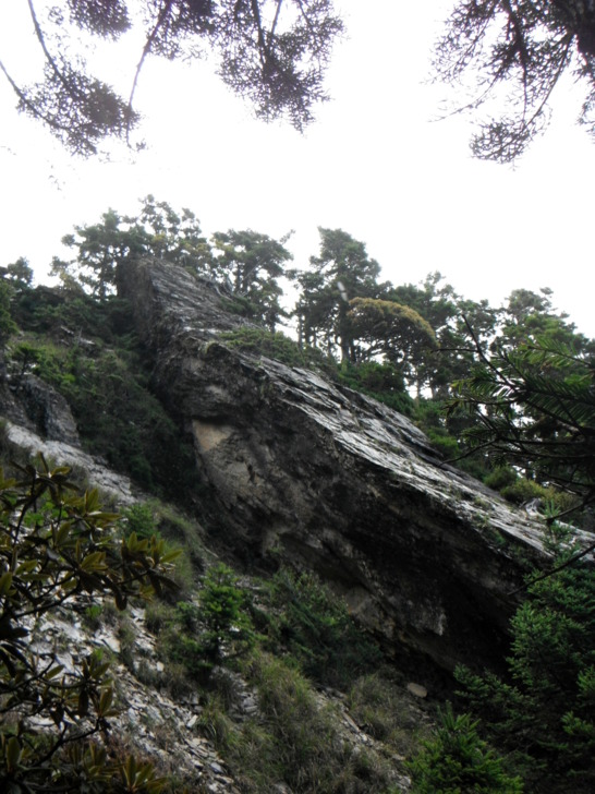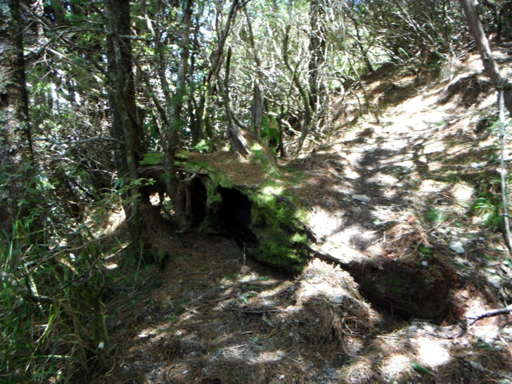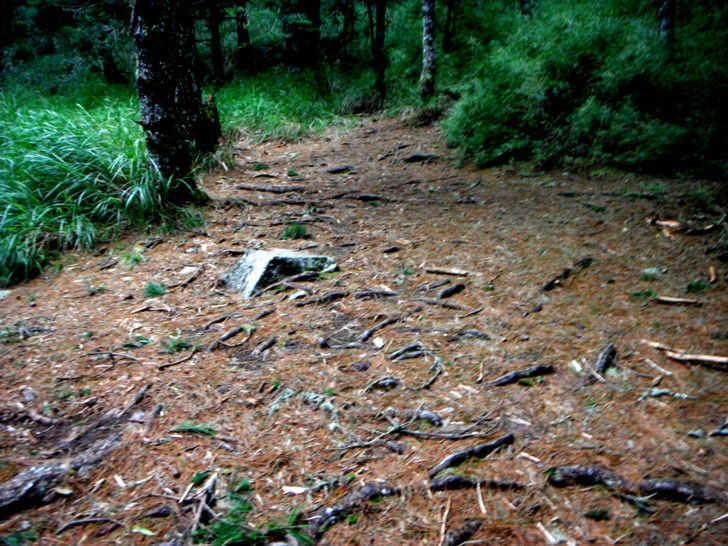 1235林間空地(H2760m),是休息的好地方,一個小時才下降300m,下山速度還真不是普通的慢。走到這裡,才驚覺一整天除了獨行帥哥,一路上沒遇到任何當攻羊頭的山友,昨天在畢錄當攻的美麗女山友,今天一樣沒再攻羊頭。路ㄟ心裡暗自叫苦,原本期待可洽商當攻羊頭的山友幫忙接駁,如今確定落空,花蓮路已斷,要怎麼回大禹嶺變成眼下最大的難題!