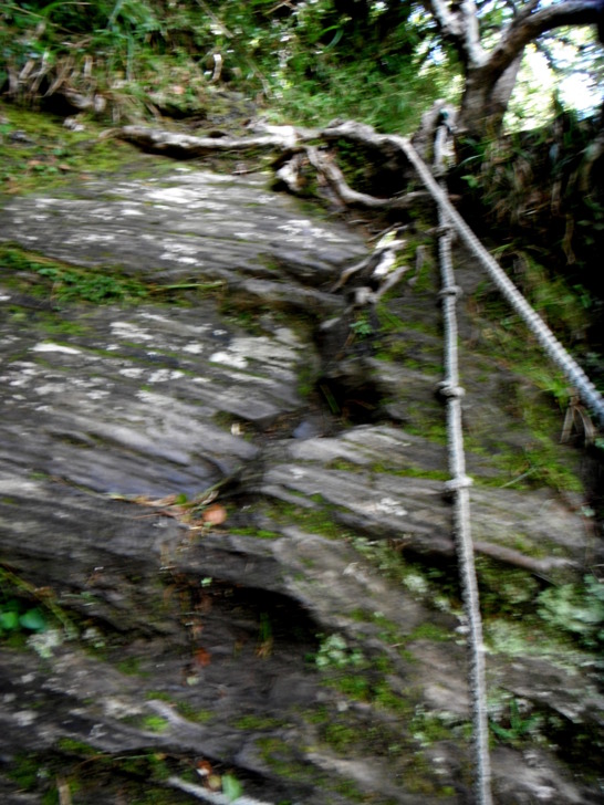 0934過3.4k拉繩陡上。踩著樹根,高落差山路,阻礙了行進速度。