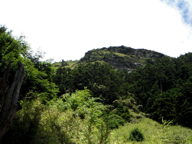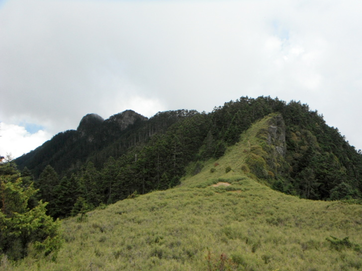 1419稜線營地(H3355m)。短箭竹營地,平坦寬廣,適合大隊紮營。雖不避風,天氣好時,優美的展望是可以期待的。鋸山連峰在此現蹤,看起來優美,感覺並不好惹。懶路ㄟ有在此紮營的念頭。後面還有一大隊山友,以他們的狀況與腳程,如果沒有在8.4k林道紮營,最多也只能走到這裡紮營,路ㄟ落腳在此,勢必尷尬且干擾,看看時間尚早,決定繼續推進。