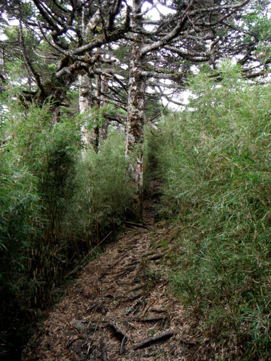 0520啟程出發。兩旁箭竹是乾的,省下穿雨褲麻煩,取緩坡上行。