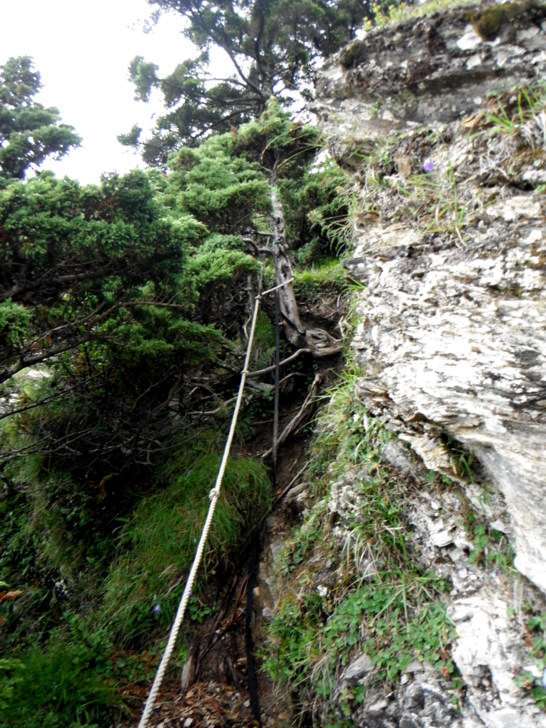 0955過3.7k(H2985m)。在此碰到昨天的年輕帥哥。他竟沒換輕裝,直接以重裝攻頂下來,真的好強,閒聊片刻後,互道珍重,續行,拉繩陡上。