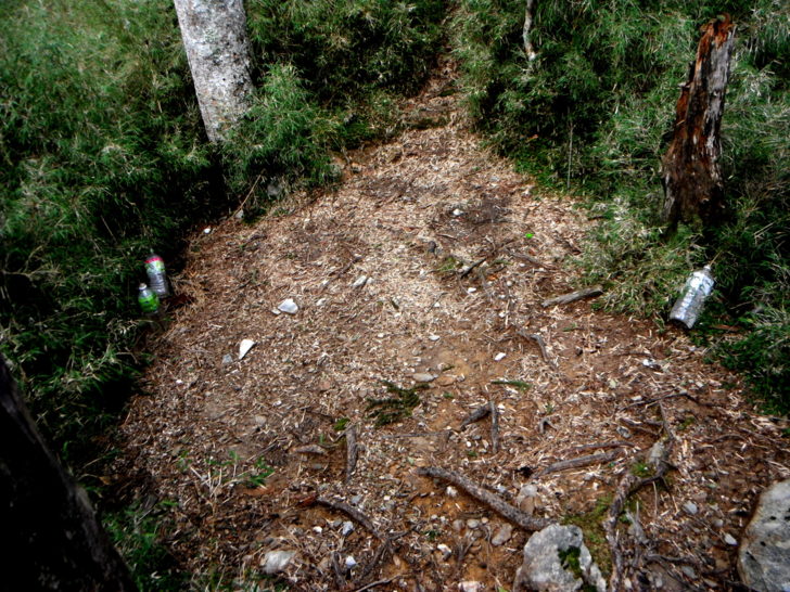 0711過4k(H2630m)後不久,一輛廢棄的機車躺在林道邊,特別的顯眼。續行。