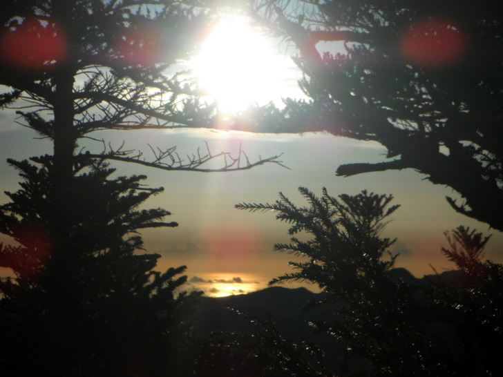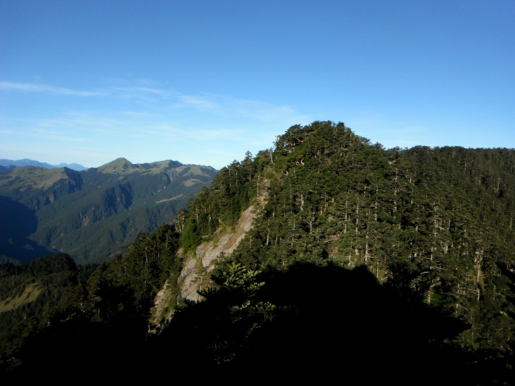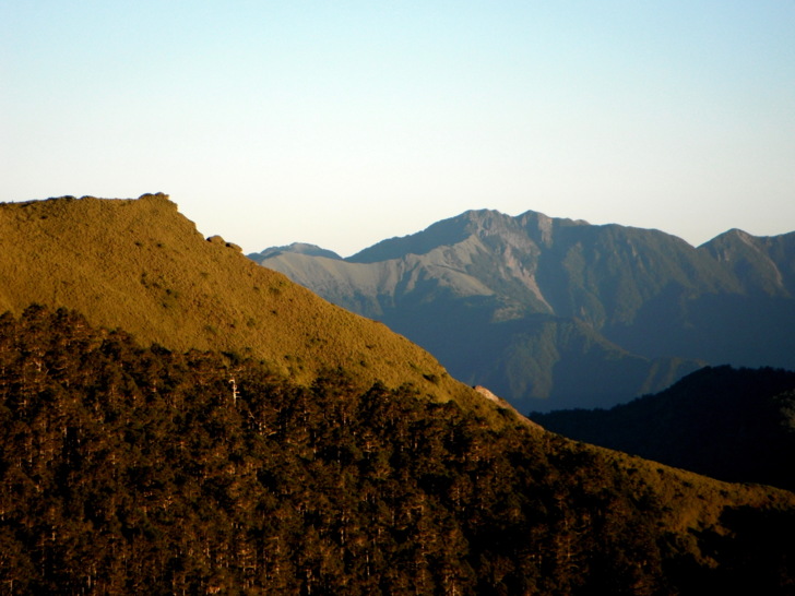 山頂風光不俗。陽光曳灑在花東海岸,一片金光閃閃,霎是耀眼。由中央尖穿越死亡稜線的北二段,展現優美的曲線,是中央山脈動人的姿色;翠綠的合歡群峰就在隔壁,感覺如此貼近,環顧群山風景,瞬間又秒殺了不少記憶體。