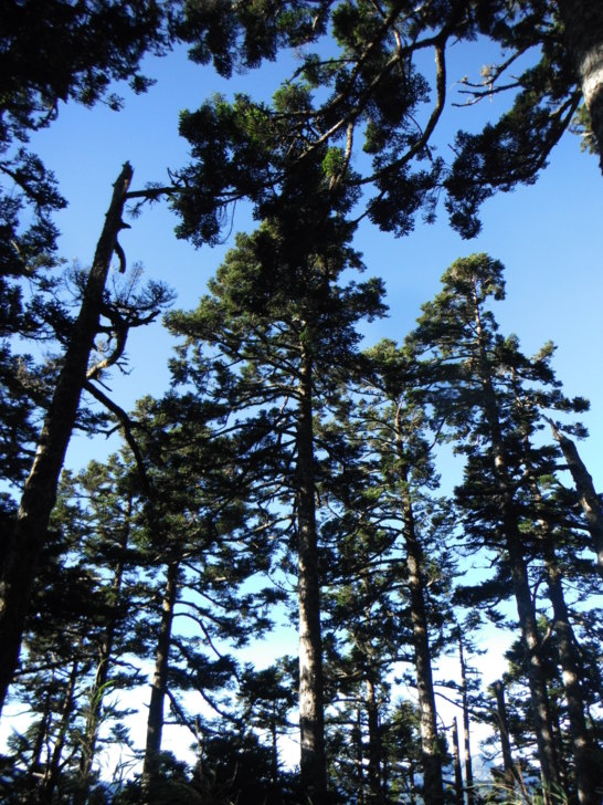 鑽過箭竹林,第七峰前整片純鐵杉林,景象優美,有北大武純林的感覺,路ㄟ放慢腳步,是欣賞,也是享受,沒想到鋸山連峰竟是許多百岳山徑的綜合體,走來竟是如此暢快淋漓,難怪山界前輩邢天正先生會把鋸山列為九障之一,雖非百岳,卻一樣有攀登的價值與樂趣。