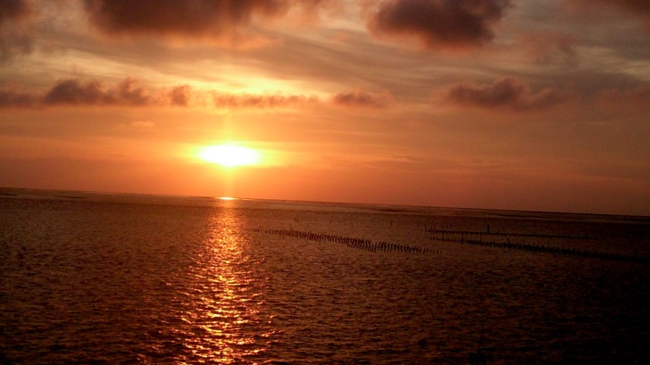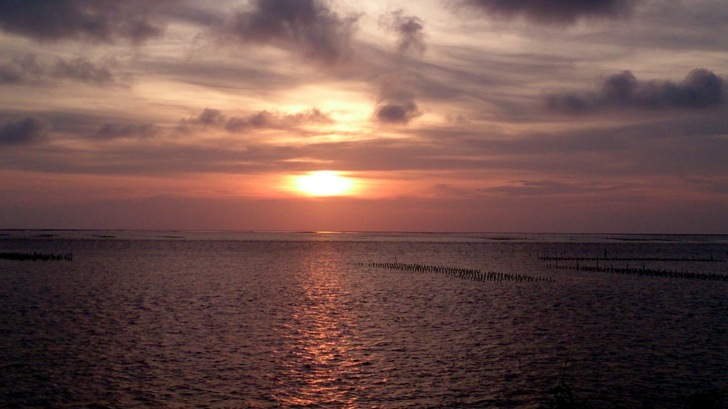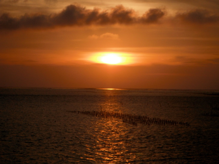 ↑北濕地海堤夕陽風光。清風徐來,獨坐海堤,一瓶飲料,欣賞著自然光影的變化,聆聽著海與雲的交談,是一種饗宴,更是一種滿足,直到夜幕低垂,驅車賦歸......。