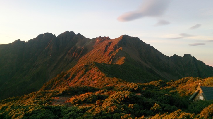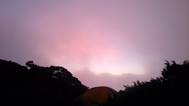 清晨三點,走主、東、北起床的時間。山屋外有著狂風吹襲的聲響,路ㄟ微開山屋大門,一陣強風夾帶雨勢迎面吹來,冷冽刺骨。看樣子今天的行程泡湯了,還是躲回睡袋繼續補眠。