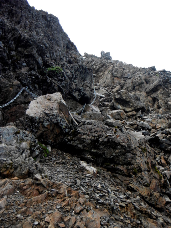 1307回抵四叉路口。到這裡,有鐵鍊指引,反而沒有迷路的問題,只是路徑不好走,在強風加持下,更是必須步步為營。