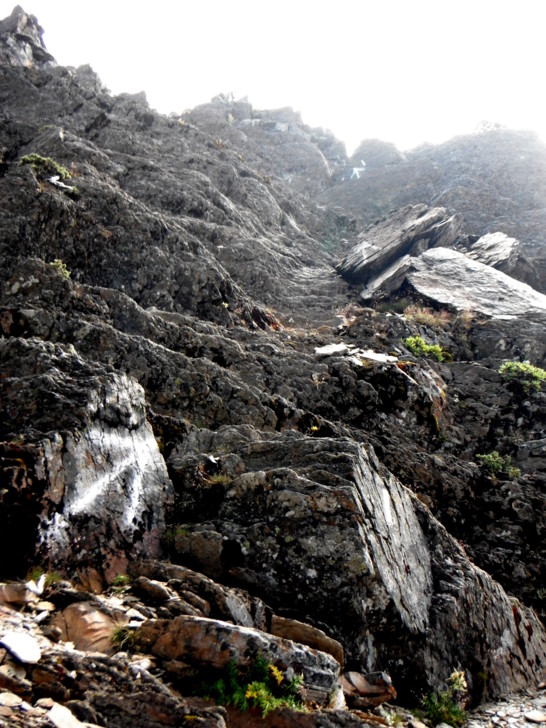 後記:1.玉山南峰由四叉路口至登頂雖僅200M,屬非常陡峭山徑,順白色噴漆行,無迷路之虞,全程幾乎手腳並用攀登,建議穿戴手套,並將登山杖留置叉路口為宜。