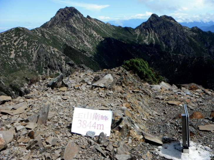 玉山南峰---標高3844M,百岳排名第五(一說第四),十峻第二。位於嘉義、高雄交界,隸屬高雄桃源區。日領時期稱"新高南山",又名閉鎖曲線峰。由主峰望之,連稜起伏,狀似游龍(由鹿山途中回望似龍頭),邢天正先生稱其為"天龍峰"。為玉群後四峰,最高且最近圓峰山屋的高山,雄偉的山勢,極佳的展望,為後四峰必登山岳之一,岳界多採與東小南、鹿山聯登方式造訪。