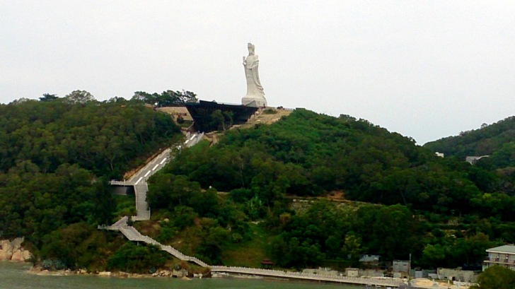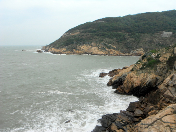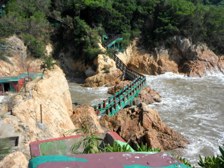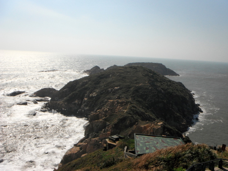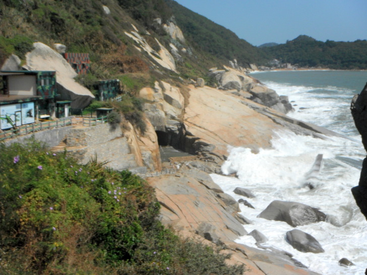↑步道終點---海上孔子像。此刻頗能感受強風巨浪,拍照後折返。