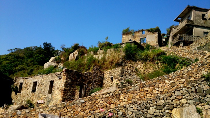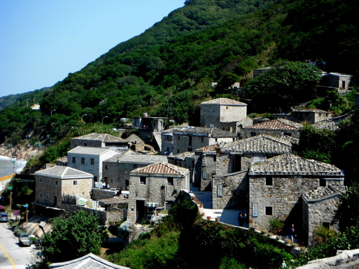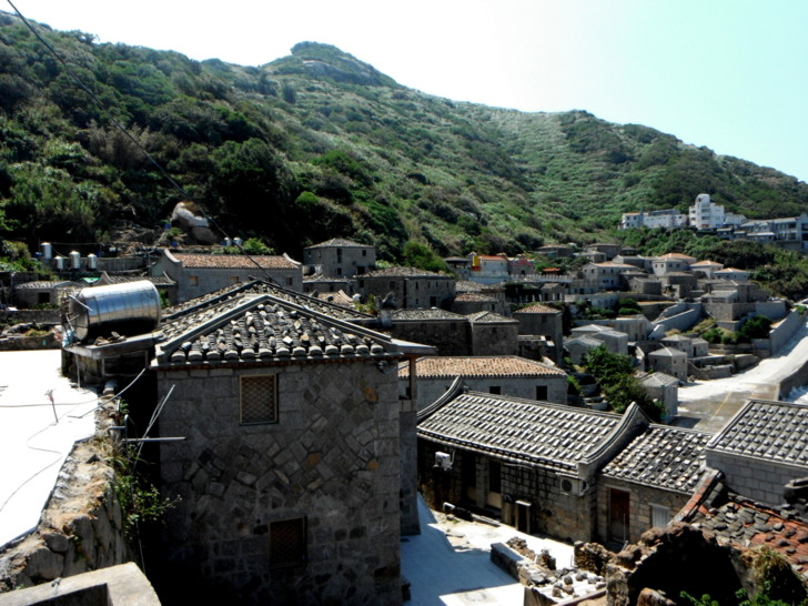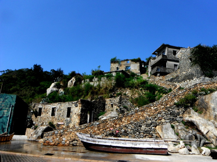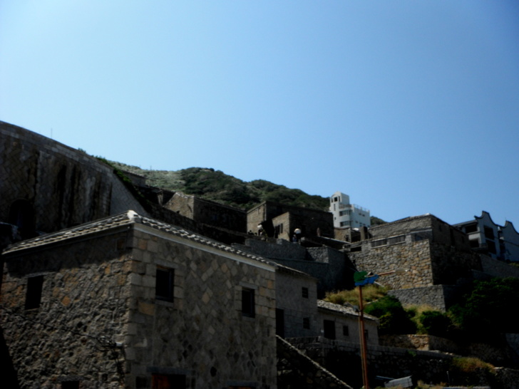 ↑芹壁聚落--北竿必遊景點之一,依山而建的村落,白灰色建築,夾在翠綠青山之中,映著碧海藍天,頗有身處歐洲的感覺,原始的建築風格與南竿的津沙聚落相互輝映。據說這裡的夕陽很美,或許路ㄟ下次造訪時,會在這裡住一晚,欣賞傳說中的美景吧!