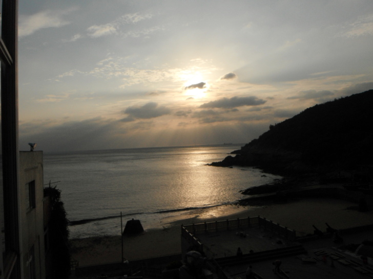 ↑回到民宿,時間尚早。與民宿主人閒聊,原來,除了津沙海灘,還有一個鐵板沙灘,面積比津沙略大。看看時間,已到退潮時刻,前往鐵板沙灘,脫下鞋子,踩著細沙與踏浪,是一種偷閒的享受,也是路ㄟ兩天來在南竿看到最美也最乾淨的沙灘。