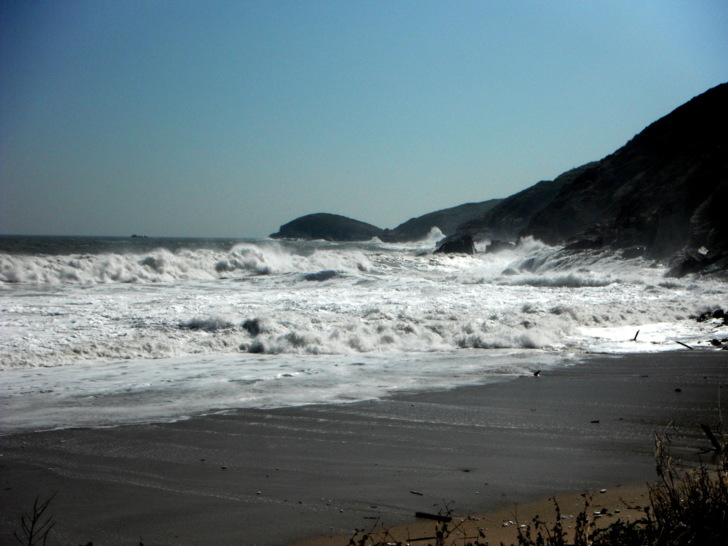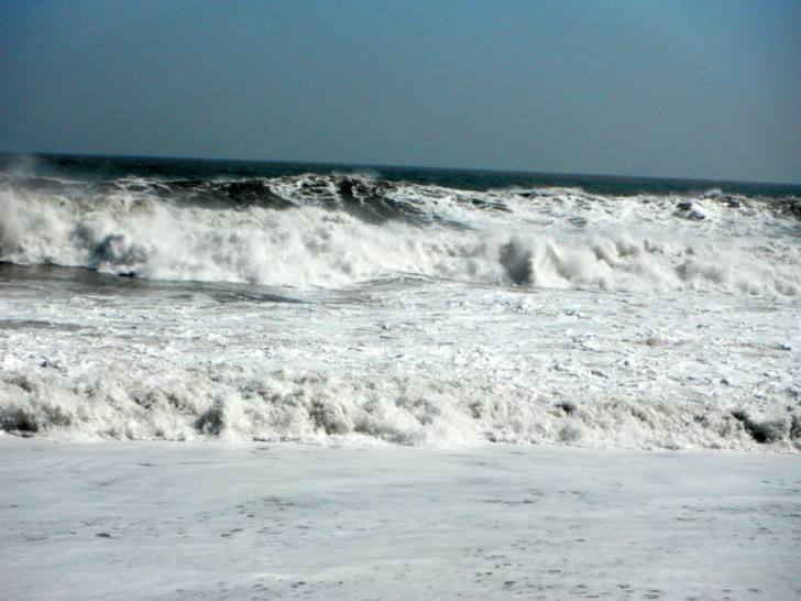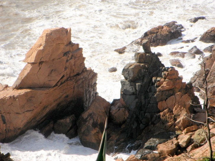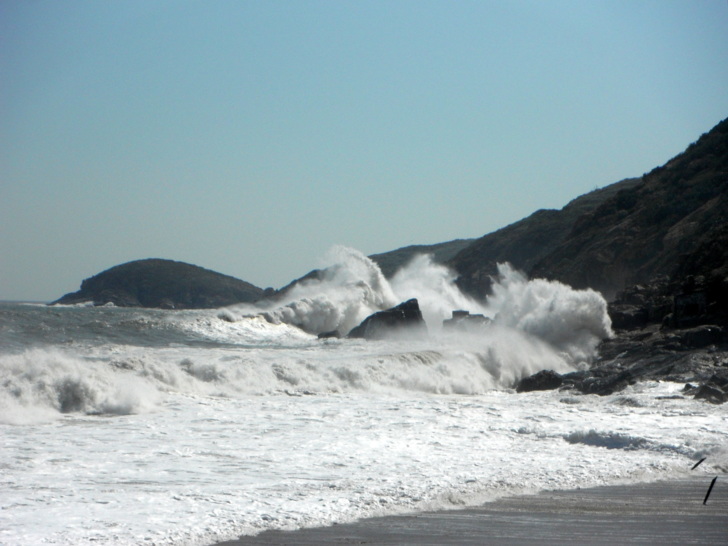 ↑著名的阪里沙灘--時值漲潮,波濤洶湧,路ㄟ雖無緣欣賞美麗的沙灘景色,駐足欣賞拍岸捲起的千尺浪,嘆為觀止,也算值回票價。