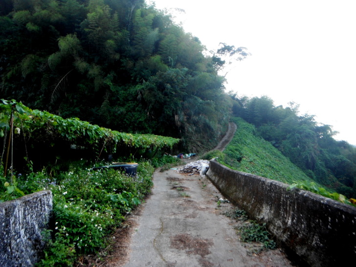 0650啟程出發(錶測高度970M)。去涼亭前水泥農路上行。溪頭、阿里山多竹,農路雖陡,行走竹林間倒也舒暢。
