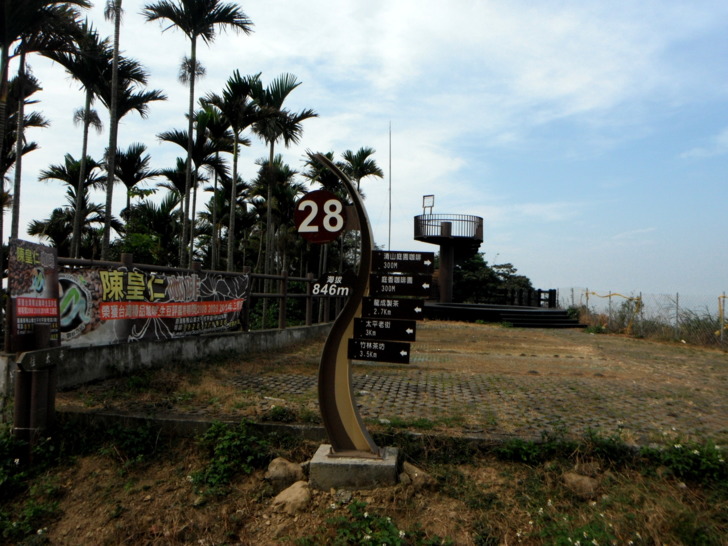 整個基點涼亭腹地並不算大,展望不算優,清晨空氣不差,在涼亭小休,補充行動水。鐵網牌綁滿布條,是大湖尖山連稜的縱走路線,路ㄟ這趟只是來玩小百岳,無意強行,留待以後有機會再說。