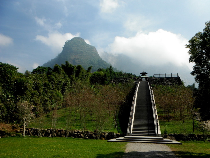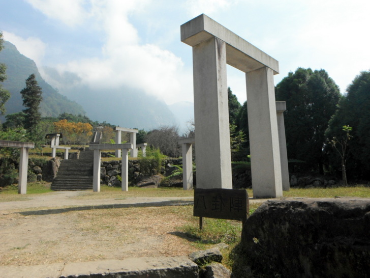 ↑八卦陣依續而上分別為四象、兩儀與太極。解說牌有說立於陣眼中心,有能量磁場。路ㄟ試了一下,沒啥感覺,倒是周圍優美的景色,與少有的人聲,讓整個心境有寧靜下來的感覺。