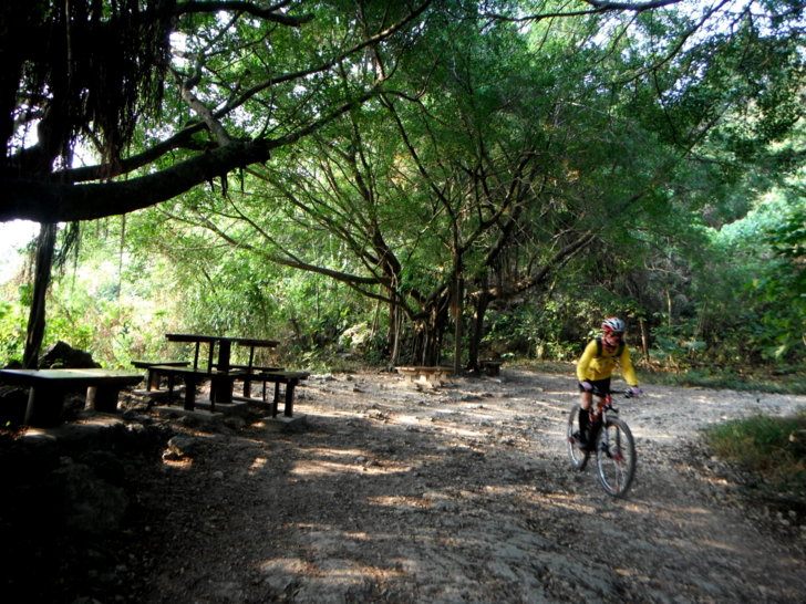 0848相思亭叉路。取直往七賢站。寬大的步道行走容易,崎嶇的道路還是不利行車,卻有自行車友在此挑戰,體、耐力讓路ㄟ佩服。