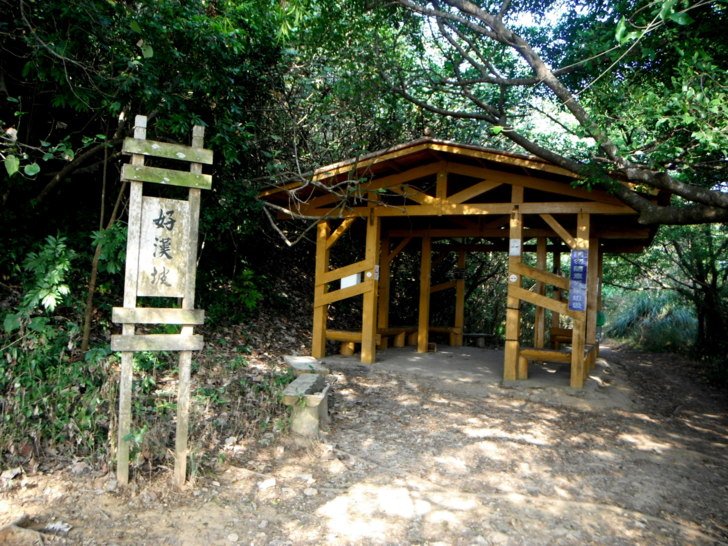0858七賢奉茶站。有不少山友與民眾在此泡茶聊天,寬大舒適的休息園地,的確是三五好友促膝閒聊的好地方。取左好漢坡上行。