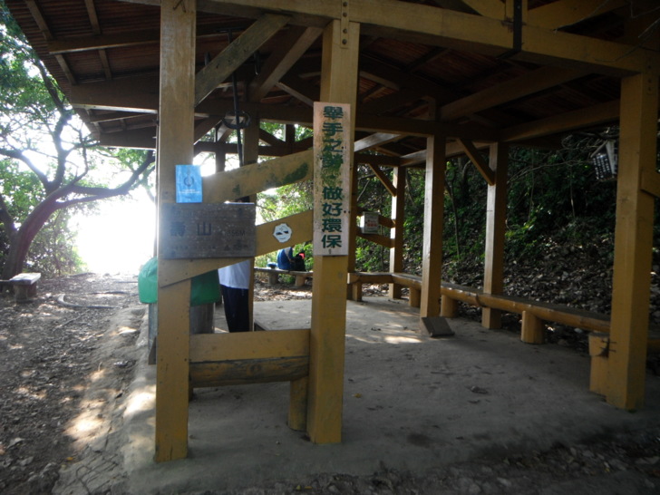 0906好漢亭。壽山最高的涼亭。一樣有山友在此休息。早期路ㄟ當兵時曾在這座山頭小住幾天,記的壽山基點還在上面,多年未曾造訪,不知被包在"軍區"的基點現身了沒?,取左上行到最高點,有山友在高點石桌泡茶,路ㄟ記得基點應該就在這裡,卻遍尋不著,與山友閒聊,才知道基點仍然被包在軍區圍牆內,只好退回好漢亭,玩登小百岳的認證點就在這裡,拍登頂照,並小休片刻。