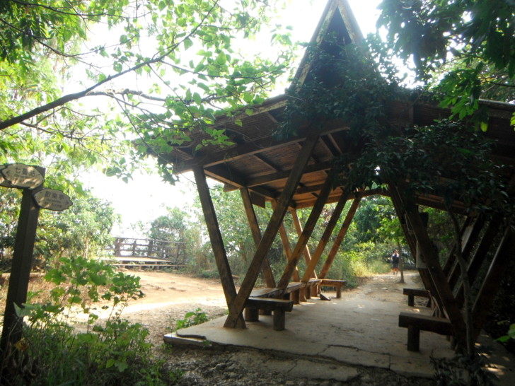 0846展望點。有桌椅可供休息。嚴重的霾害,空氣品質不佳,整個展望顯得灰濛,拍照後續行。