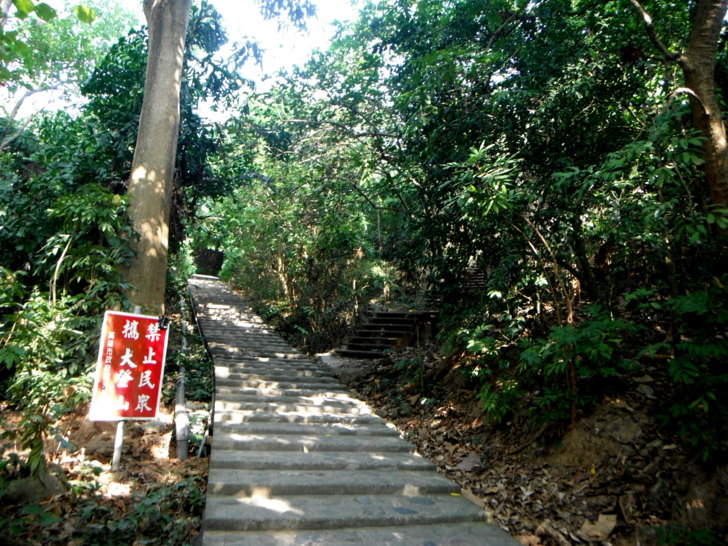 0822壽山登山口。取右石階上行。良的天氣,雜木林內的石階緩坡,走來輕鬆,今天行程不趕,悠閒慢行。