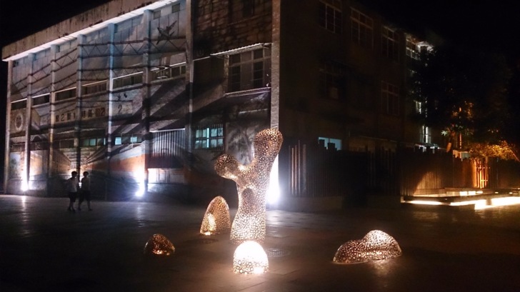 ↑幽靜的駁二特區。循自行車道慢行慢欣賞,有著不同於白天的風情,晚風徐吹,不覺涼意,是一種清新的氛圍。走到盡頭接上鐵道公園,少了光雕,鐵道公園比起白天遜色很多,散步到捷運站,回飯店睡覺去...。
