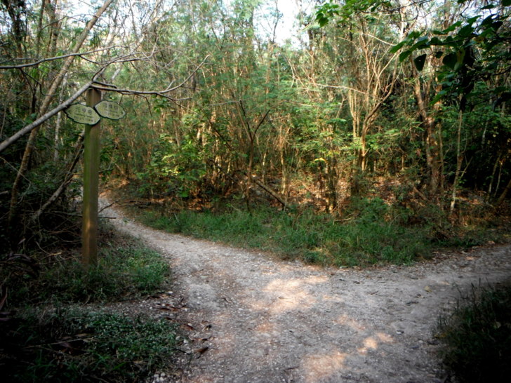 0831觀林亭叉路。兩條路都能上山頂,左路雖較快,路ㄟ還是選擇直行的寬大平緩步道慢慢走。