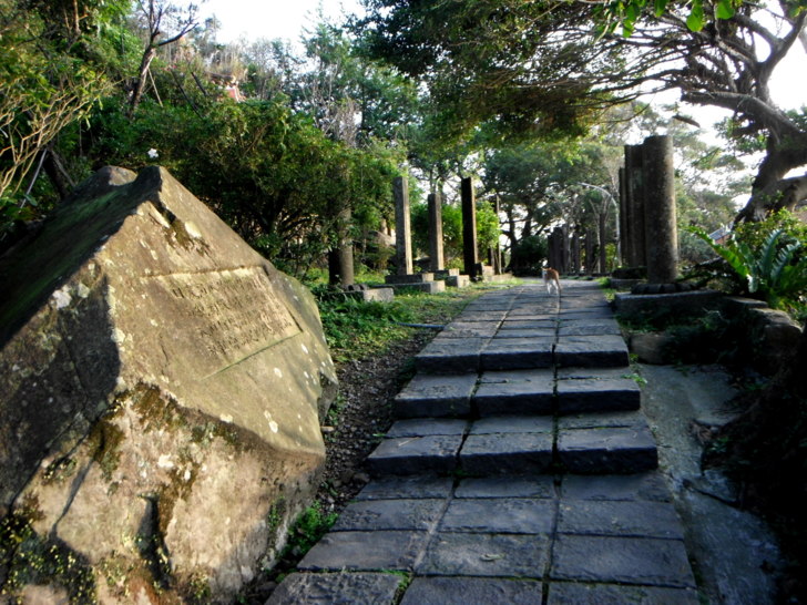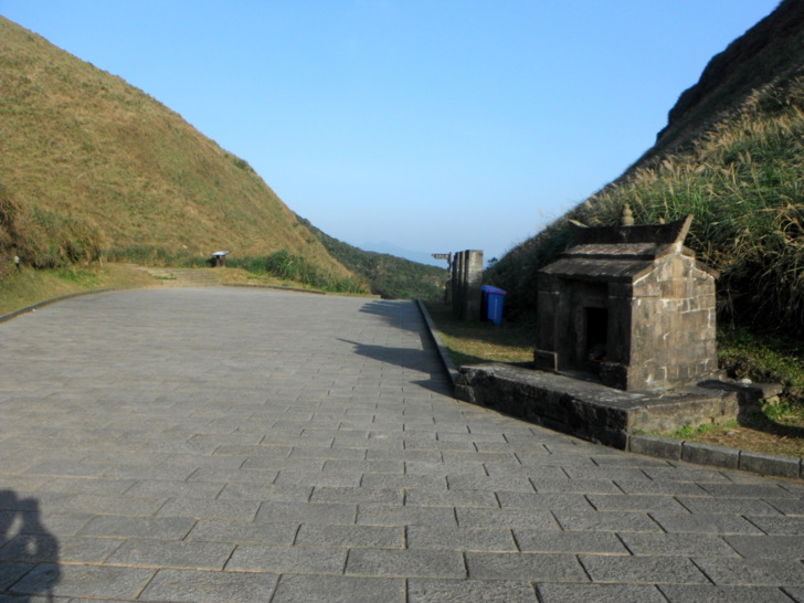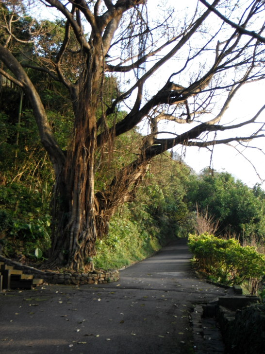 走下去100M看看"虎字碑",這塊鎮風石碑,是古蹟,也是歷史。繼續直行就是通往福隆的草嶺古道,看完石碑後,折返,取景觀亭旁石階上行,正式進入桃源谷古道的範圍,一片開闊的景色,路徑雖陡,風光秀麗,走來一身輕快。