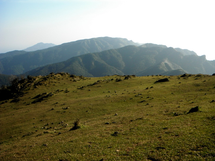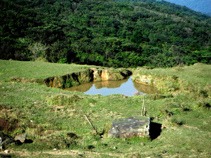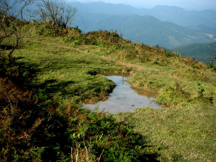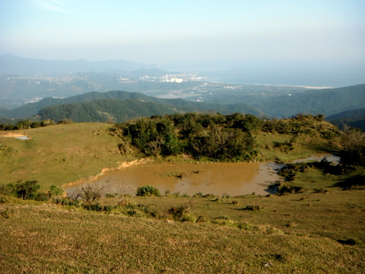 0843展望平台(H515M)。無敵的展望,直有類似高山的風光,巒峰層層堆疊起伏,淺草如茵,山谷中散佈著幾個黑水塘、小看天池,水雖污濁,卻搭配的恰到好處。