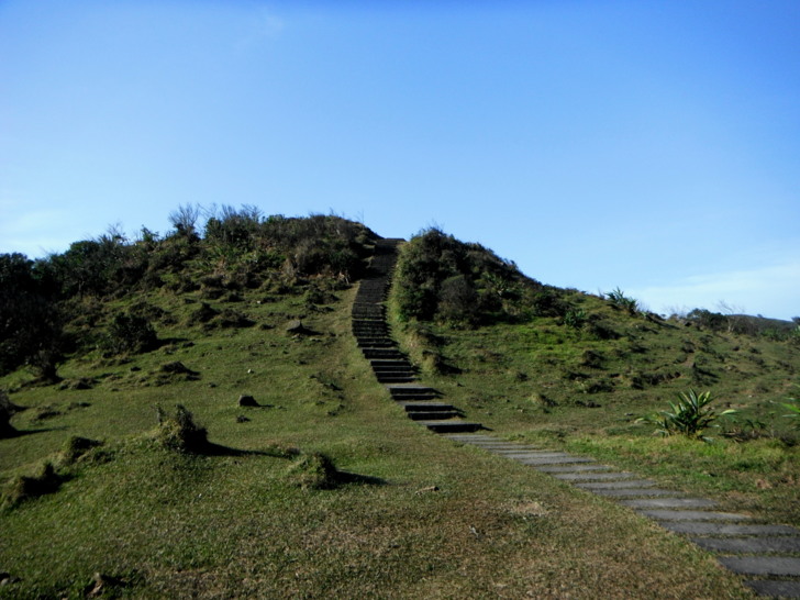 0753續行。取石階步道上行。隨著高度上升,山、海風光逐漸展現,完善的步道雖略陡,走來卻感覺舒暢。