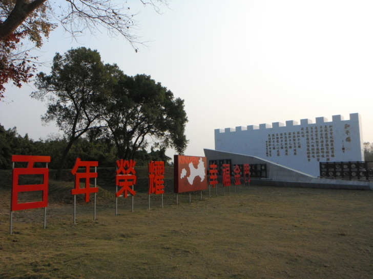 思源亭,旁有銅像是紀念開鑿坑道的當時指揮官。